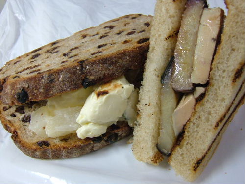 The blue cheese and pear sandwich was alright, just that the blue cheese had no blue cheese taste at all, more like cream cheese so I was disappointed. The burnt one was the foie gras and aubergine sandwich - if it "looked" burnt from the start I wouldn't have bought it! Only found out after the first bite! They are not cheap you know - more than 500yen for EACH sandwich so I expected more!