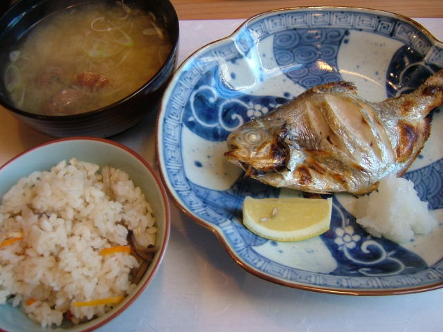 おまんま定食、1575円。焼き魚のえぼ鯛、炊き込みご飯、あさりのお味噌汁。丸の内オアゾはやっぱり込んでるね。ここを選んだのは並ばなくてすむから。値段わりには量がすくなさすぎる。(Too little!!)