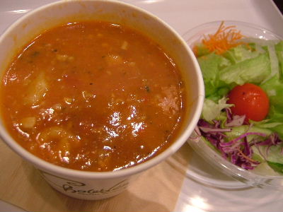 Seafood tomato Chowder soup. Seattle style apparently - very salty.