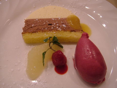 オレンジとチョコレートムース、ぶどうシャーベット。ランチコースは1680円。(和牛にしたのでプラス315円)