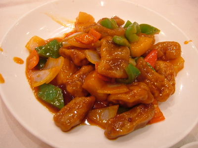 Sweet and sour pork with pineapple.