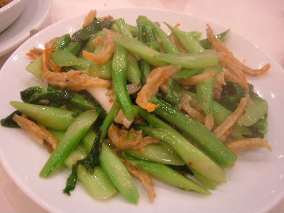 Fried vegetables with dried prawn and salty fish.