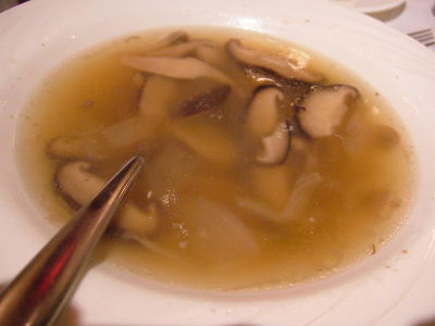 ランチコース: ワイルドマッシュルームスープ。羊のロースト、ローズマリーとブラックオリーブソース。コーヒーついて、HK$88。
