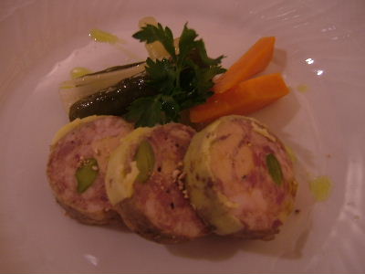 foie gras pate...loks so yummy~~ is that pistachio inside?