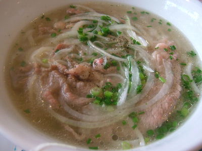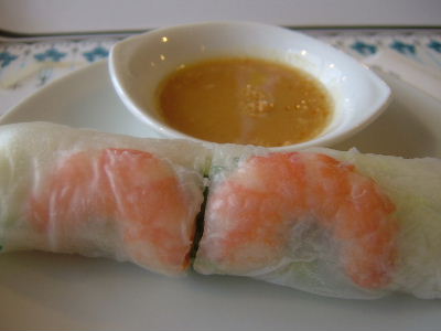 牛肉のフォー、650円。生春巻き、200円。フォーが美味しい~。The kid of the chef in the pic was very curious about my camera apparently...