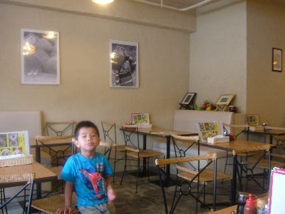 haha the kid tried to ruin your picture~ AT least his t-shirt fit the color of the blog.