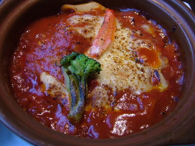 Hmmm....so strange to have sashimi and then tomato sauce gratin....there was only 1 tiny piece of crab meat, and some chicken and....pasta!! -o-;;;;