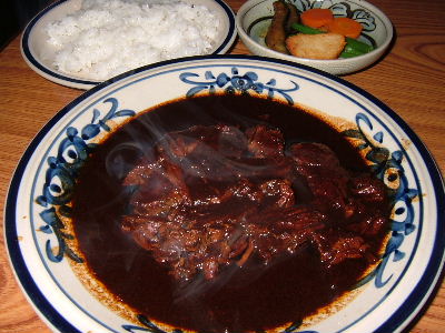 Beef stew is expensive anyway! 2000yen seems like a norm! The restaurant is intimate inside but rather intimidating outside...like I had take a deep breath before opening the door cos the front is so rundown and gloomy and uninviting. But the madam was very very friendly, even switched on a heater and put it right next to me, afraid that I might be cold, but I had to tell her to put it away cos it was too warm...^^;;