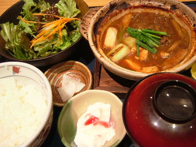 牛鍋定食、980円。食券を買うような定食屋だが、店内はキレイなので、女の子1人でも入りやすくて、定食も美味しい。