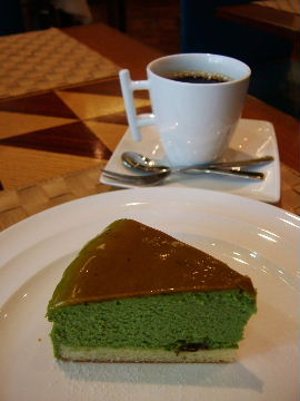 豚ロースのグリル、抹茶スフレチーズ。Grilled pork lunch, 1200yen, plus dessert macha cheese cake, 300yen. The pork was really oily and salty but at least it looks good in pictures. Oh I am dying for something nice....
