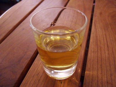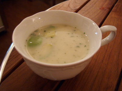 Some Czech liqueur...STRONG and spicy. Some super-sour cheese soup, with pieces of avocado. Interesting...