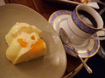 Some milk pudding with (canned?)fruits. Tastes like stuff you make from those supermarket pudding mix...^^;;