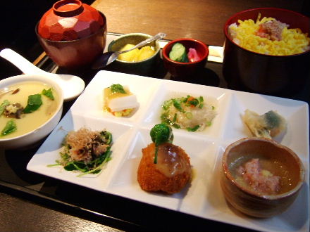 蟹御膳、1000円。 Everything has crab in it. The crab chawanmushi would be nicer if it was hotter. Like the crab cream croquette the best.