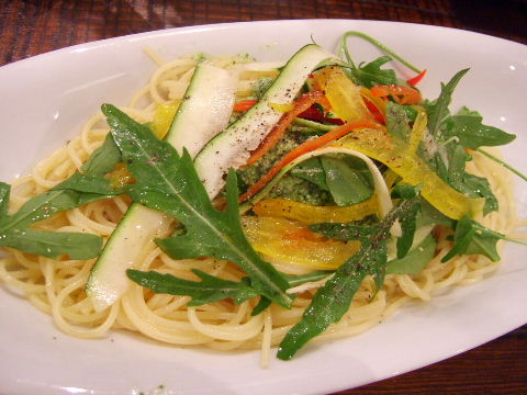 野菜がいっぱいのパスタ。梅が入ってるからさっぱりしてそうだけど・・・
