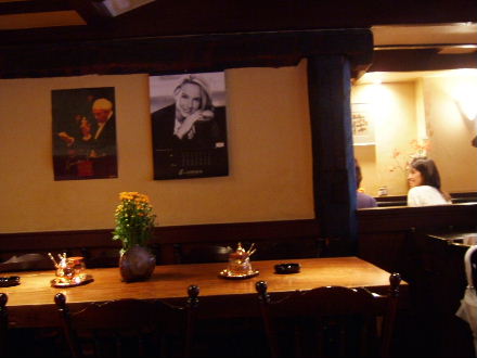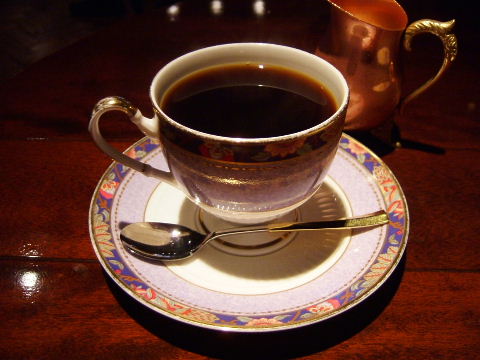 Cheese cake and blend coffee. The cheese cake has sour cream in it and is really quite sour. The blend coffee is nice...I watched the girl barista make it for me and I thought: hey I'm doing similar things at home with a coffee filter. ^^;; The blend doesn't taste that unique either yet it costs 735yen...gosh. There are cheaper places with better quality beans but then, the atmosphere here is very classic and sophisticated, and the porcelain cups they use are very elegant...