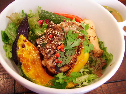 塩漬け豚の網焼き野菜丼、950円。