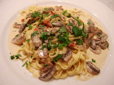 ドライトマトとマッシュルーム クリームソースフェットチーネ、1000円。