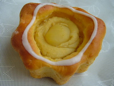 マンゴとマンゴクリームのパン。皮がまずい。。。マンゴだけ食べた。