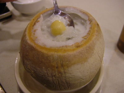 雪蛤と蓮子のココナッツスープ、$39。Lotus seed and Hasma with coconut juice.