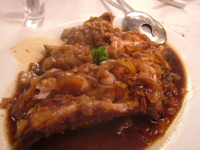 洋葱一字排(スペアリブ、甘いオニオンソース)。肉がとても柔らかい。Spare rib in sweet onion sauce, meat very soft.