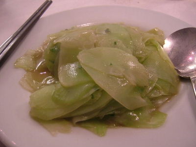 鮑汁時菜(野菜のアワビソース炒め)。Stir-fried vegetables with abalone sauce.