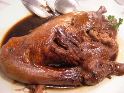 八宝鴨、糯米飯詰め。美味しいけど、ソースがやっぱ甘い。Duck stuffed with sticky rice, in sweet sauce.