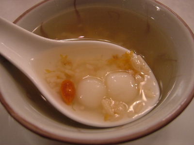 杏汁官燕(ツバメの巣アーモンドシロップ煮)。Bird's nest with almond cream.