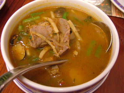 ゲン パア(牛肉と野菜の激辛煮込み)。「タイで最も辛い料理」だそうだが、別にそんなに。。。でもスープは美味しい。Beef and vegetables stew very hot curry - not really THAT hot....but nice.