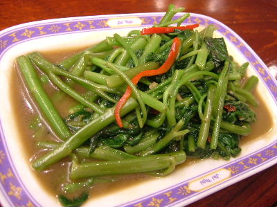 パッ パック ブン(空心菜のタイ味噌入りかき油炒め)。普通。