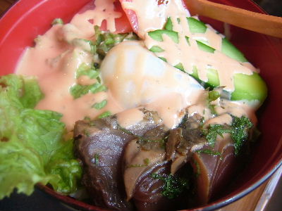 Okinawa styled simmered belly pork rice bowl. Very good!