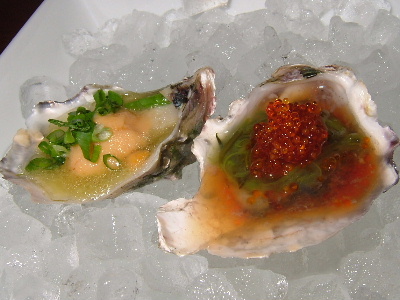 巨峰グレープフルーツ。生ウニとワサビソースのオイスターシューター&めかぶと飛びっ子、土佐酢のオイスターシューター。蟹とウニのスパゲッティカルボナーラ。3260円。