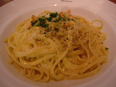かきのスパゲティ、1300円。美味しい~!スパゲティの茹で加減といい、こってりしたクリームソースといい、丁寧な仕事してるって感じ。今年初のカキも美味しかった~。