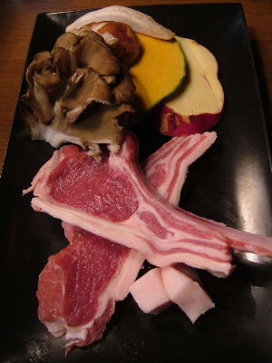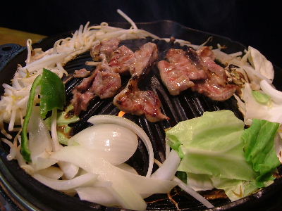 生ラムセット、野菜バイキング付き、1000円。くせがなく、食べやすい肉だった。