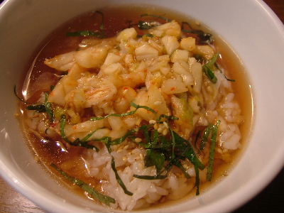 ラムソーセージ、580円。キムチ羊湯茶漬け、550円。ソーセージはちょっとしょっぱいけど、お茶漬けと一緒に食べるとグッド。