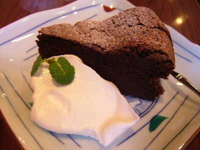 チョコレートスフレ(フランボワーズソース付き)、1000円。焼きたてであつあつ、すごく美味しかった~。
