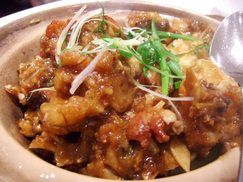 Hotpot rice, with chicken breast in XO paste, and with pig's knuckle in prawn sauce. The sauce is bit too salty but with rice it is quite good.