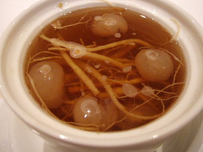 Longan and ginseng and corn - very good. Fried Water Chestnut cake - a bit oily.