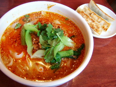 坦々麺+餃子。Tan-tan noodles and gyoza lunch set, 940yen. It is a chain restaurant and I wasn't expecting high, but the noodles turned out to be surprisingly chewy and good, portion was large as well.