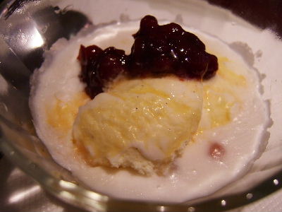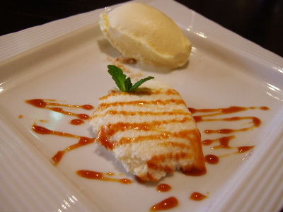 Chocolate ice-cream and Mascarpone cheese with raisins. Chocolate was grated in front of me by the waitor - a bit messy. ^^;; But it tasted wonderful. My friend's dessert was pineapple and ginger ice-cream.