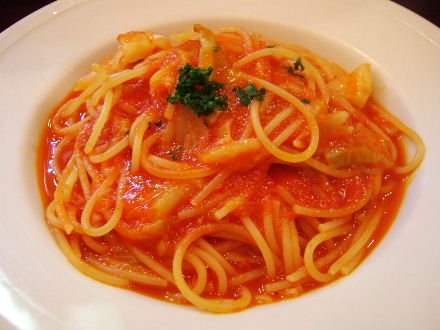 The interior of the restaurant was not exactly that pretty and the lighting was just gloomy but not atmospheric. When we went, it was very empty, no music was playing, the many waitors with kinda stiff posture were standing nearby, dead quiet, the kitchen was just right next to us, also produced very little sound....frankly the atmosphere was terrible...^^;; At first when I took out the camera, the waitor told me not to use flash, I was not going to use anyway....But after I took pictures of each dish, he brought the lamb to me before cutting it into half so that I could take pictures first, probably because he thought it would look better as a whole, so maybe they didn't mind the pictures but were afraid that the flashlight might bother other customers. My friend who doesn't understand Japanese took a picture of me sucking the bones with the flash though...^^;; The portion was so huge that my friend couldn't finish the lamb, I was quite full but was going to eat it for her, but the waitor came up and said he would wrap it up for us to take-away. I have never been to an upscale restaurant that does that...I think if there were more customers, the atmosphere would have been more lively and the experience more enjoyable. And just order the appetizers and the meat dishes would be satisfying enough, the pasta can be skipped. ^^;;