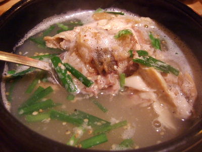 参鶏湯、780円。In a town full of ojisan-oriented eating places, this shop has very feminine interior, the customers were all girls, and it seems to be popular cos people kept coming in even though the last order for lunch was over. I was expecting it to taste good....but I was so disappointed...the soup was too diluted and completely tasteless, the chicken piece on the spoon was the ONLY piece, also very tasteless...hmm...