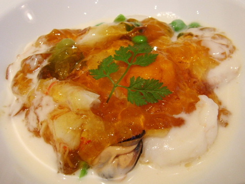 Appetizer is seafood consomme jelly with hotspring egg. The seafood are very fresh and sweet, even has sea urchin! But later I realised I had the similar appetizer last time....^^;;