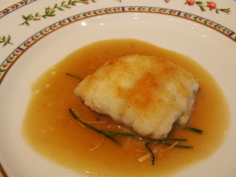 Fish dish is sole, with butter sauce. The surface is lightly fried and golden crispy, very good.