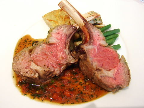 Roasted lamb chop! Can remember the sauce's name...vegetable bits and herb. This is the main dish I was desperate to have! The lamb is rare but amazingly soft and tender and has the right amount of fat - heaven!